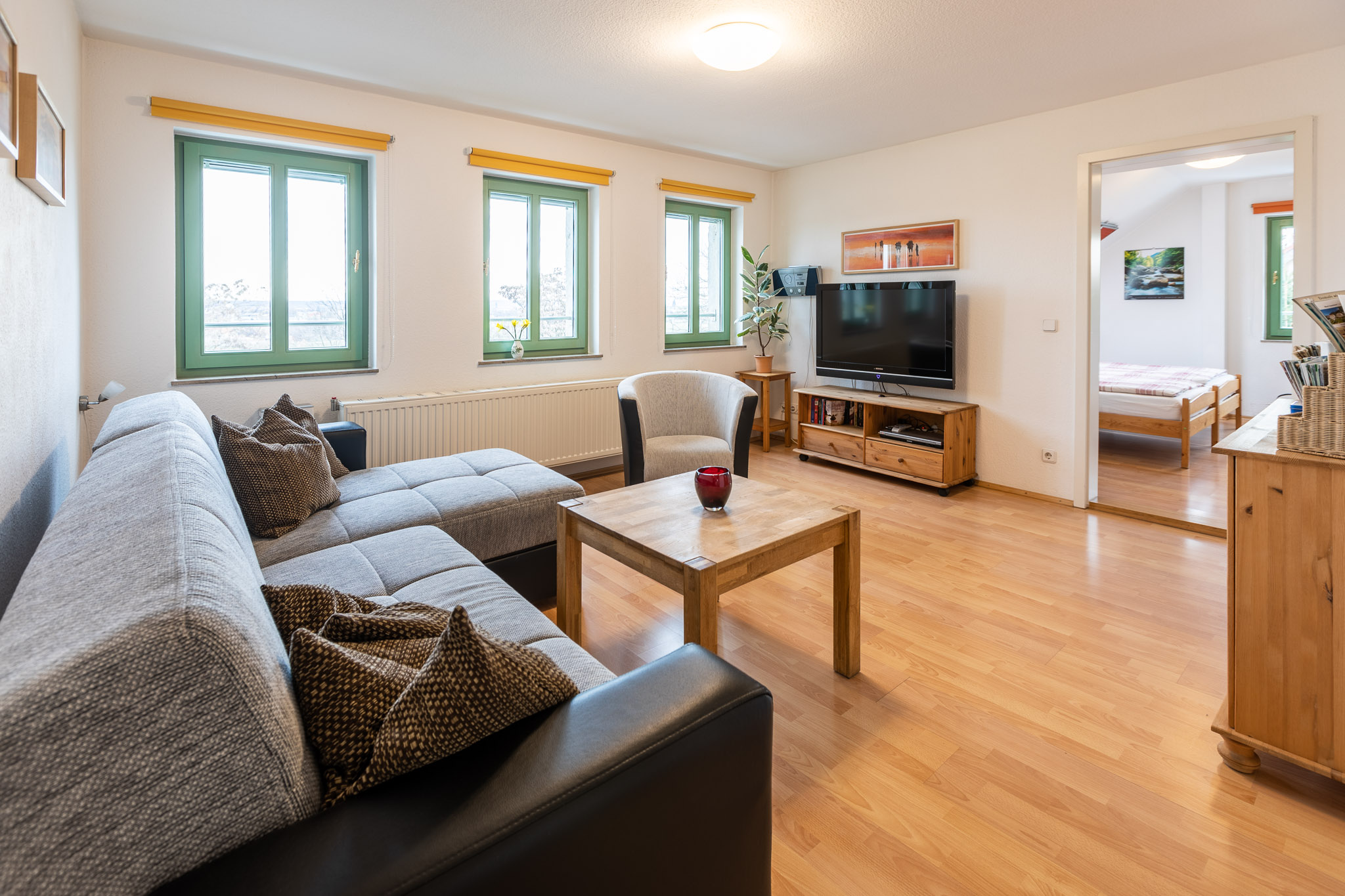 Eckcouch mit Schlafmöglichkeit, Radio / CD, TV mit DVD, Internet mit W-LAN